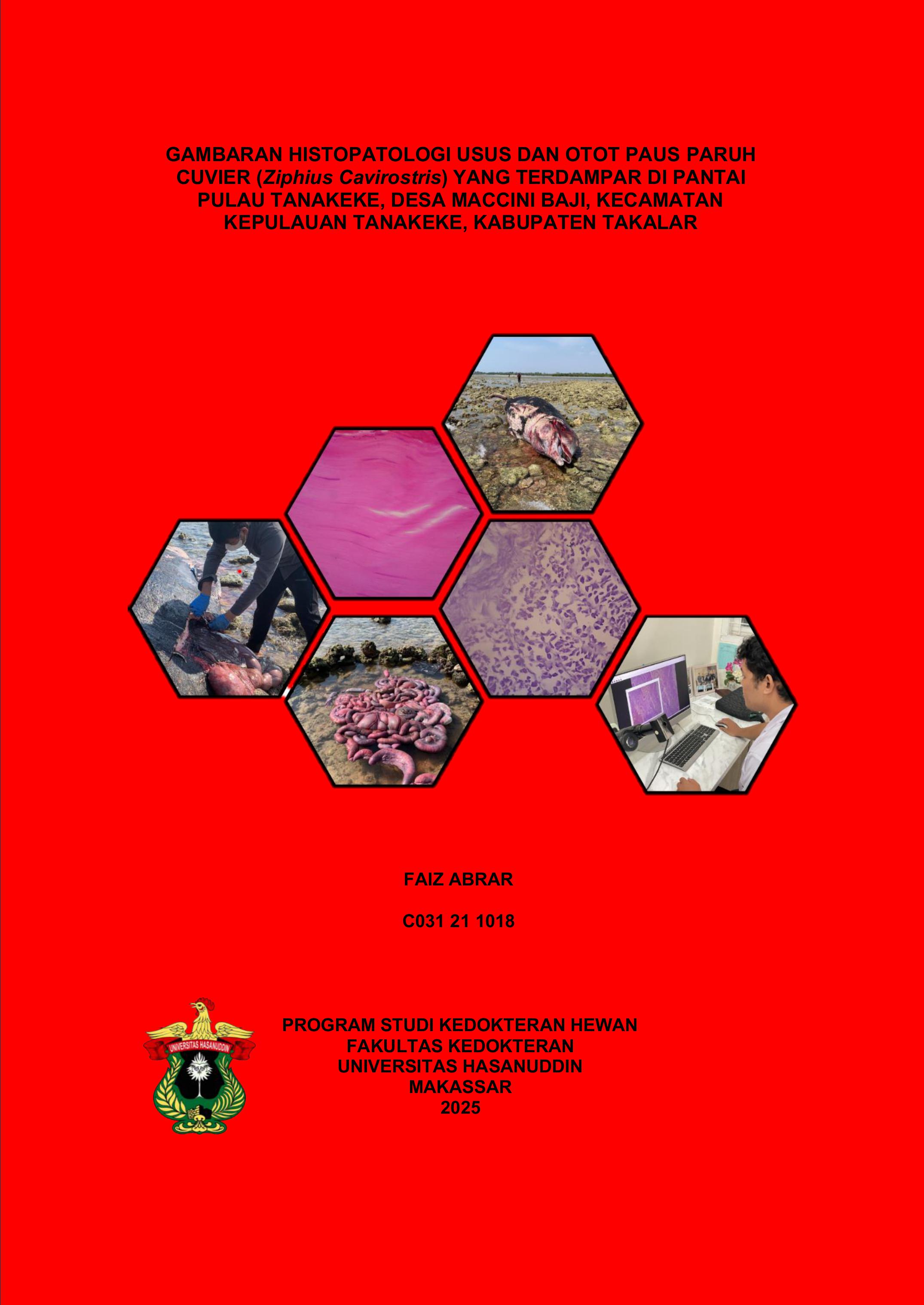 ABRAR, FAIZ (2025) GAMBARAN HISTOPATOLOGI USUS DAN OTOT PAUS PARUH CUVIER (Ziphius Cavirostris) YANG TERDAMPAR DI PANTAI PULAU TANAKEKE, DESA MACCINI BAJI, KECAMATAN KEPULAUAN TANAKEKE, KABUPATEN TAKALAR = HISTOPATHOLOGICAL FINDINGS OF THE USUS AND MUSCLE OF THE PAUS OF CUVIER PARUH (Ziphius Cavirostris) BEACHED ON TANAKEKE ISLAND, MACCINI BAJI VILLAGE, KECAMATAN KEPULAUAN TANAKEKE, TAKALAR DISTRICT. Skripsi thesis, Universitas Hasanuddin.