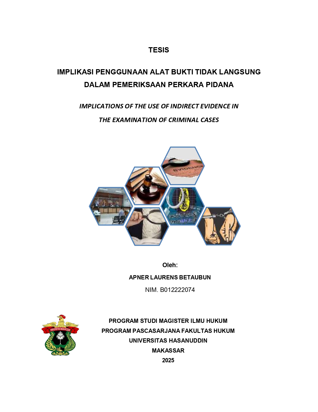 BETAUBUN, APNER LAURENS (2025) IMPLIKASI PENGGUNAAN ALAT BUKTI TIDAK LANGSUNG DALAM PEMERIKSAAN PERKARA PIDANA = IMPLICATIONS OF THE USE OF INDIRECT EVIDENCE IN THE EXAMINATION OF CRIMINAL CASES. Thesis thesis, Universitas Hasanuddin.