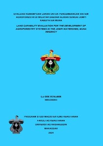 SUMAHIR, LA ODE (2024) EVALUASI KEMAMPUAN LAHAN UNTUK PENGEMBANGAN SISTEM AGROFORESTRI DI WILAYAH DAERAH ALIRAN SUNGAI JOMPI KABUPATEN MUNA = LAND CAPABILITY EVALUATION FOR THE DEVELOPMENT OF AGROFORESTRY SYSTEMS IN THE JOMPI WATERSHED, MUNA REGENCY. Disertasi thesis, Universitas Hasanuddin.