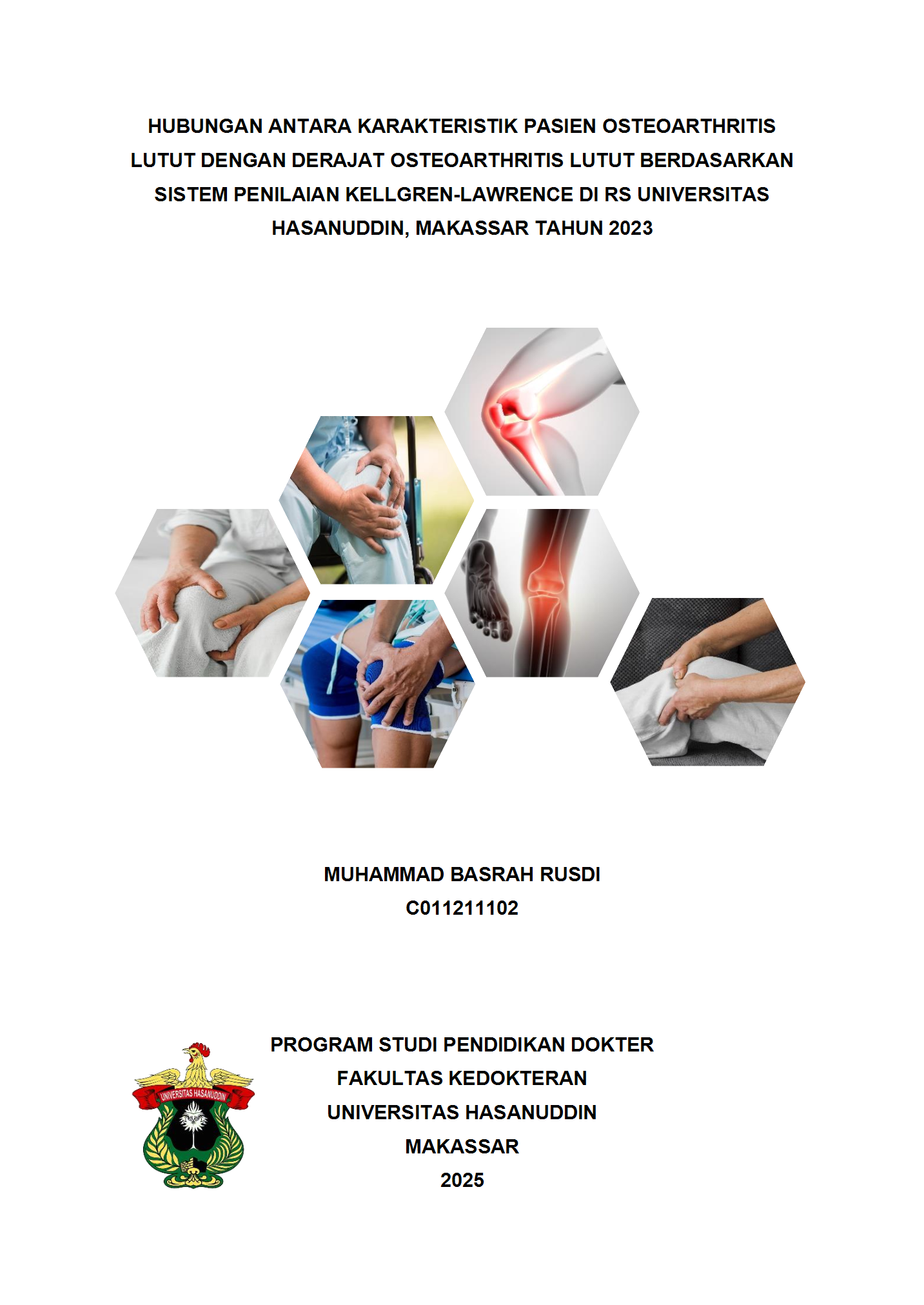 BASRAH RUSDI, MUHAMMAD (2025) Hubungan Antara Karakteristik Pasien Osteoarthritis Lutut dengan Derajat Osteoarthritis Lutut Berdasarkan Sistem Penilaian Kellgren-Lawrence di RS Universitas Hasanuddin, Makassar tahun 2023 = The Relationship Between Knee Osteoarthritis Patient Characteristics and Knee Osteoarthritis Severity Based on The Kellgren-Lawrence Grading System at Hasanuddin University Hospital, Makassar in 2023. Skripsi thesis, UNIVERSITAS HASANUDDIN.