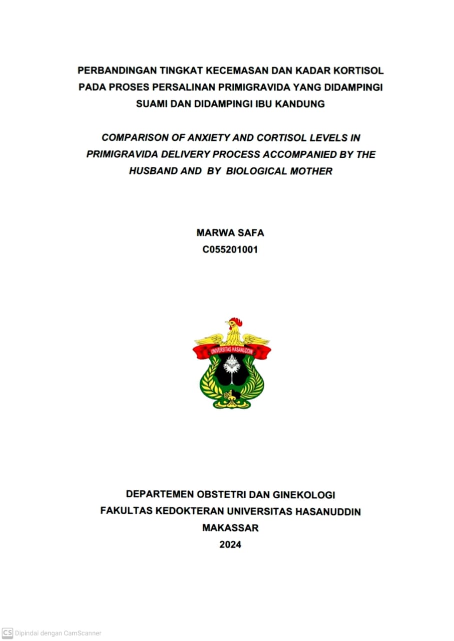 SAFA, MARWA (2024) PERBANDINGAN TINGKAT KECEMASAN DAN KADAR KORTISOL PADA PROSES PERSALINAN PRIMIGRAVIDA YANG DIDAMPINGI SUAMI DAN DIDAMPINGI IBU KANDUNG = COMPARISON OF ANXIETY AND CORTISOL LEVELS IN PRIMIGRAVIDA DELIVERY PROCESS ACCOMPANIED BY THE HUSBAND AND BY BIOLOGICAL MOTHER. Thesis thesis, Universitas Hasanuddin.