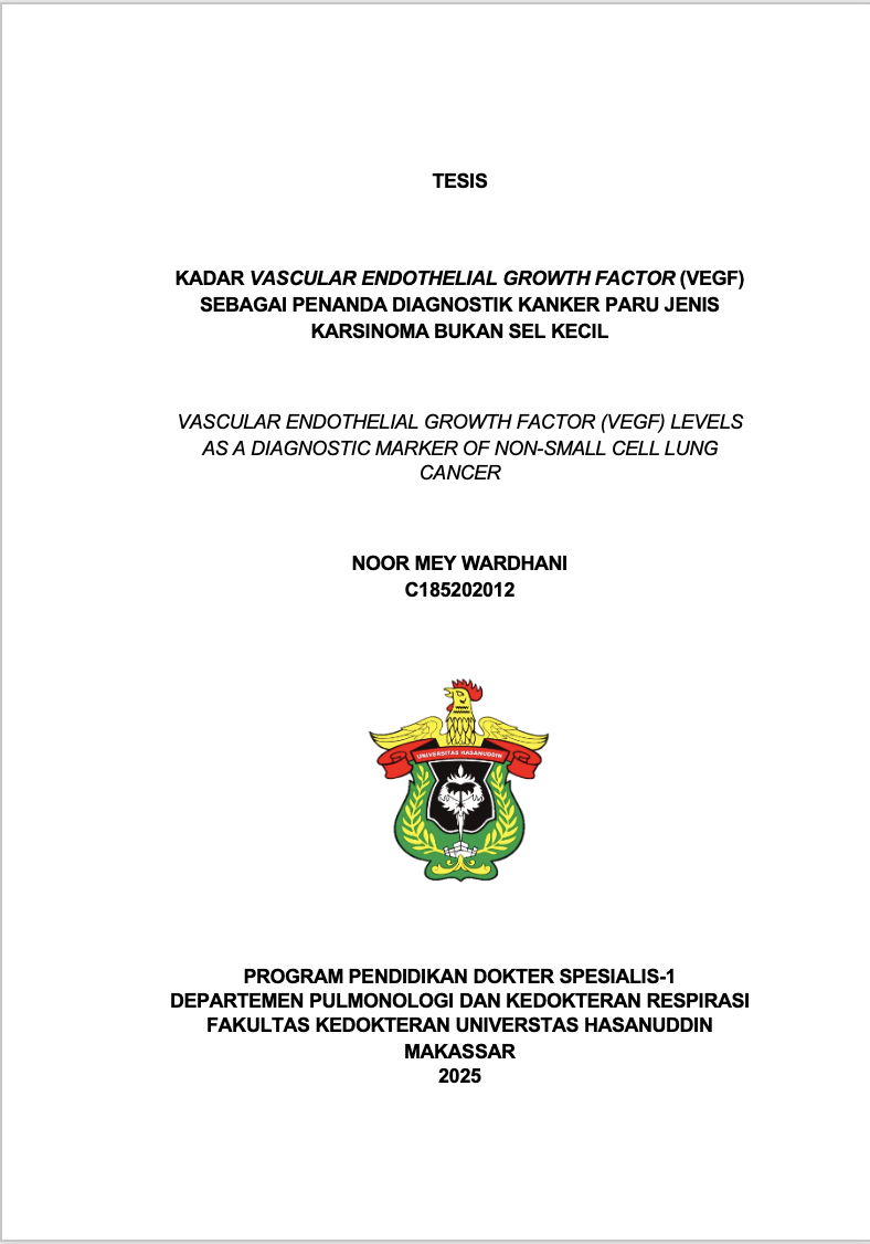 WARDHANI, NOOR MEY (2025) KADAR VASCULAR ENDOTHELIAL GROWTH FACTOR (VEGF) SEBAGAI PENANDA DIAGNOSTIK KANKER PARU JENIS KARSINOMA BUKAN SEL KECIL = VASCULAR ENDOTHELIAL GROWTH FACTOR (VEGF) LEVELS AS A DIAGNOSTIC MARKER OF NON-SMALL CELL LUNG CANCER. Thesis thesis, Universitas Hasanuddin.