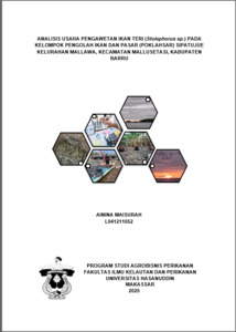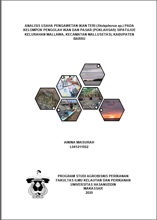 MAISURAH, AININA (2025) ANALISIS USAHA PENGAWETAN IKAN TERI (Stolephorus sp.) PADA KELOMPOK PENGOLAH IKAN DAN PASAR (POKLAHSAR) SIPATUJUE KELURAHAN MALLAWA, KECAMATAN MALLUSETASI, KABUPATEN BARRU = ANALYSIS OF ANCHOVY PRESERVATION BUSINESS (STOLEPHORUS SP.) IN THE SIPATUJUE FISH PROCESSING AND MARKET GROUP (POKLAHSAR) OF MALLAWA VILLAGE, MALLUSETASI DISTRICT, BARRU REGENCY. Skripsi thesis, Universitas Hasanuddin.