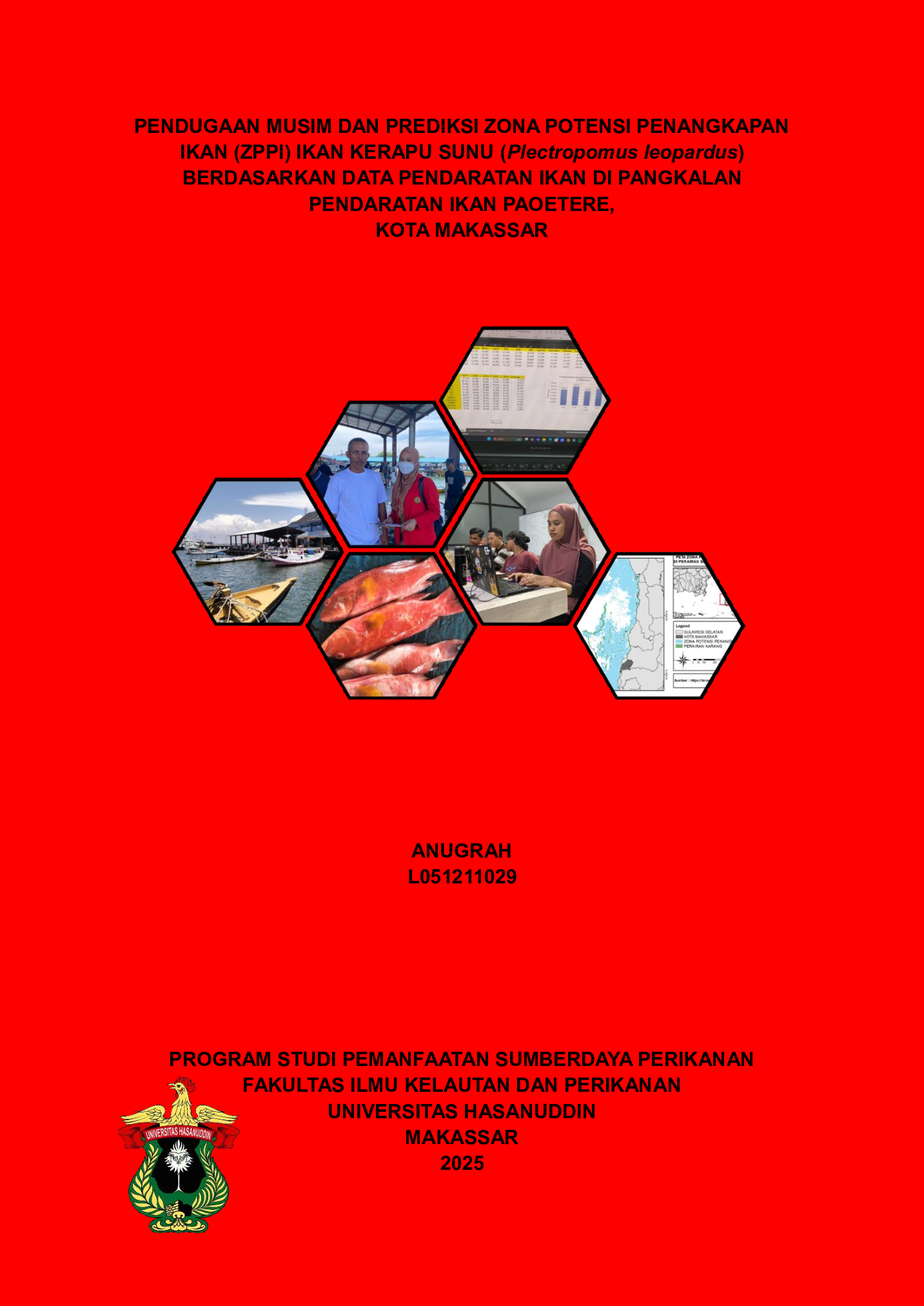 ANUGRAH, ANUGRAH (2025) Pendugaan Musim Dan Prediksi Zona Potensi Penangkapan Ikan (ZPPI) Ikan Kerapu Sunu (Plectropomus leopardus) Berdasarkan Data Pendaratan Ikan di Pangkalan Pendaratan Ikan Paotere, Kota Makassar = Estimation of Fishing Season and Prediction of Potential Fishing Zones (PFZs) for Sunu Grouper Fish (Plectropomus leopardus) Based on Fish Landing Data at Paotere Fish Landing Base, Makassar City. Skripsi thesis, Universitas Hasanuddin.