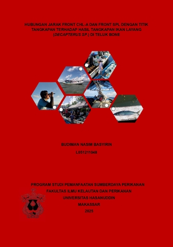 BASYIRIN, BUDIMAN NASIM (2025) Hubungan Jarak Front Chl-A Dan Front SPL Dengan Titik Tangkapan Terhadap Hasil Tangkapan Ikan Layang (Decapterus Sp.) Di Teluk Bone = The Relationship between the Distance of Chl-A Front and SPL Front with Catch Point to the Catch of Mackerel scad (Decapterus sp.) in Bone Bay. Skripsi thesis, Universitas Hasanuddin.