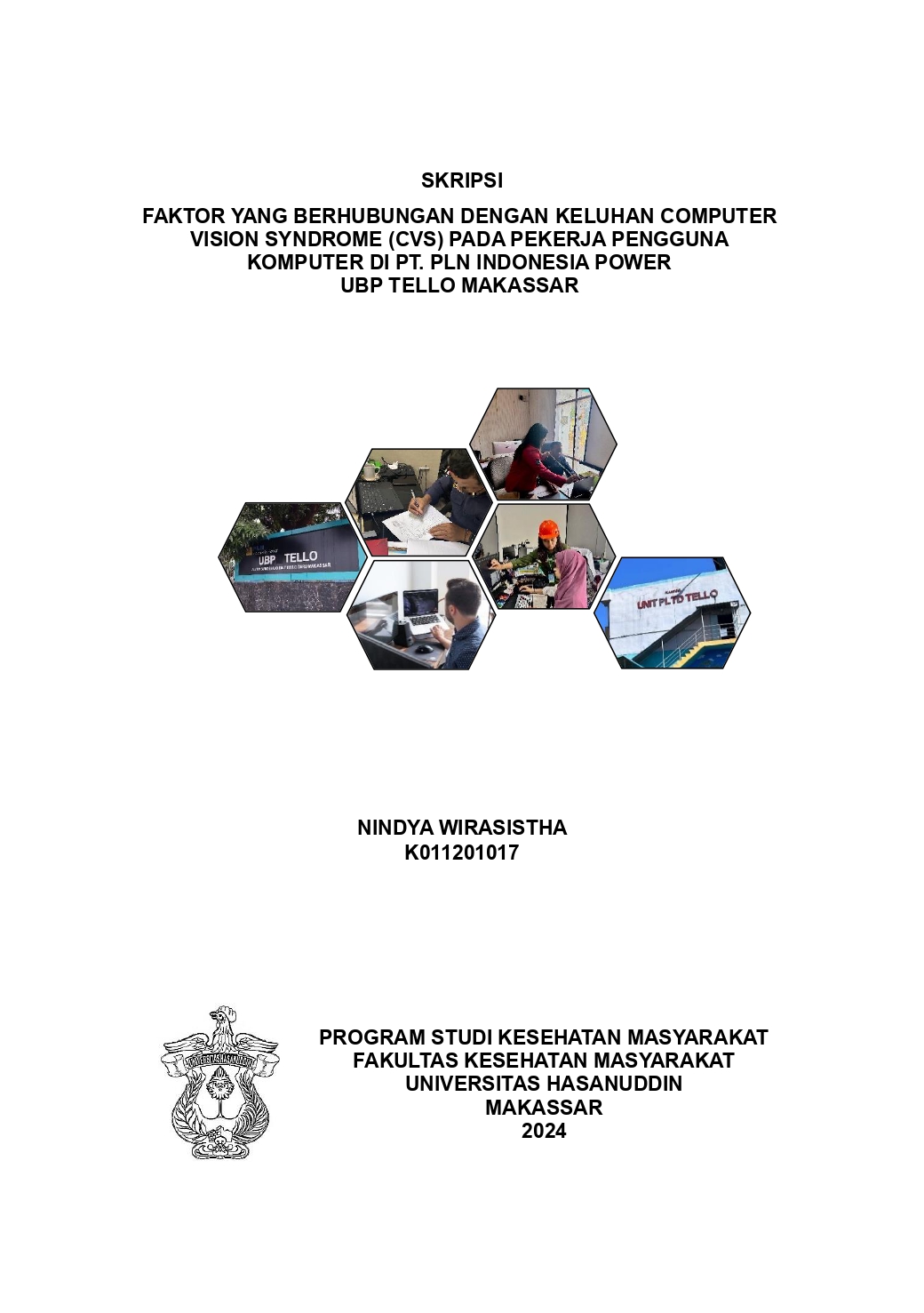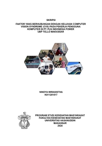 WIRASISTHA, NINDYA (2024) Faktor Yang Berhubungan dengan Keluhan Computer Vision Syndrome (CVS) Pada Pekerja Pengguna Komputer Di PT. PLN Indonesia Power UBP Tello Makassar = Factors Associated To The Complaints Of Computer Vision Syndrome (CVS) In Computer Using Workers At PT. PLN Indonesia Power UBP Tello Makassar. Skripsi thesis, Universitas Hasanuddin.