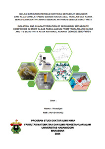 KHADIJAH, KHADIJAH (2024) Isolasi dan Karakterisasi Senyawa Metabolit Sekunder dari Alga Coklat Padina australis Hauck asal Takalar dan Kayoa serta Uji Bioaktivitasnya sebagai Antivirus dengue serotype-3 = Isolation and Characterization of Secondary Metabolite Compounds in Brown Algae Padina australis Hauck from Takalar and Kayoa and its Bioactivity as an antiviral against dengue serotype-3. Disertasi thesis, Universitas Hasanuddin.