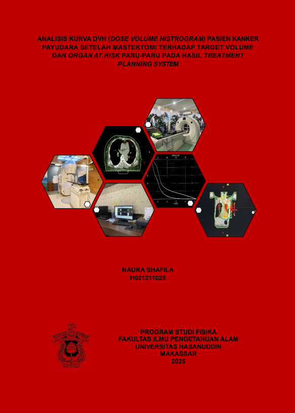 SHAFILA, NAURA (2025) ANALISIS KURVA DVH (DOSE VOLUME HISTROGRAM) PASIEN KANKER PAYUDARA SETELAH MASTEKTOMI TERHADAP TARGET VOLUME DAN ORGAN AT RISK PARU-PARU PADA HASIL TREATMENT PLANNING SYSTEM = ANALYSIS OF DVH CURVES (DOSE VOLUME HISTOGRAM) IN BREAST CANCER PATIENTS AFTER MASTECTOMY ON TARGET VOLUME AND ORGAN AT RISK LUNGS IN TREATMENT PLANNING SYSTEM RESULTS. Skripsi thesis, Universitas Hasanuddin.