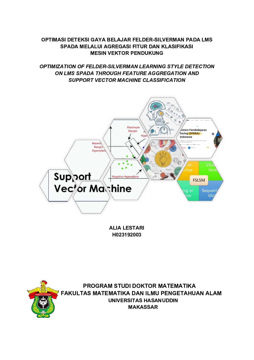 LESTARI, ALIA (2025) OPTIMASI DETEKSI GAYA BELAJAR FELDER-SILVERMAN PADA LMS SPADA MELALUI AGREGASI FITUR DAN KLASIFIKASI MESIN VEKTOR PENDUKUNG = OPTIMIZATION OF FELDER-SILVERMAN LEARNING STYLE DETECTION ON LMS SPADA THROUGH FEATURE AGGREGATION AND SUPPORT VECTOR MACHINE CLASSIFICATION. Disertasi thesis, Universitas Hasanuddin.