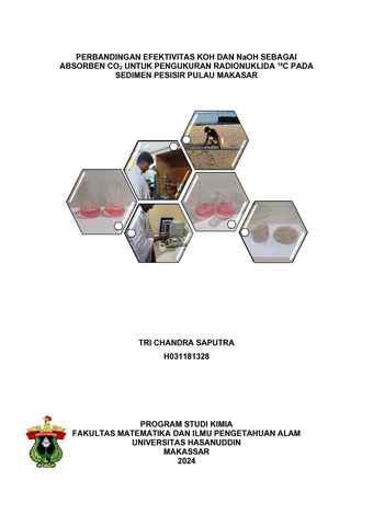 SAPUTRA, TRI CHANDRA (2024) Perbandingan Efektivitas KOH dan NaOH Sebagai Absorben CO2 untuk Pengukuran Radionuklida 14C pada Sedimen Pesisir Pulau Makasar = Comparison of the Effectiveness of KOH and NaOH as CO2 Absorbents for the Measurement of 14C Radionuclides in Coastal Sediments of Makasar Island. Skripsi thesis, Universitas Hasanuddin.