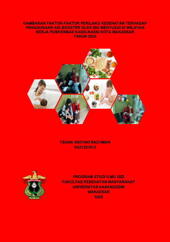 RACHMAN, TSANA ARIYANI (2025) Gambaran Faktor-faktor Perilaku Kesehatan terhadap Penggunaan ASI Booster oleh Ibu Menyusui di Wilayah Kerja Puskesmas Kassi-kassi Kota Makassar Tahun 2024 = Description of Health Behavorial Factors Related to the Use of Breastfeeding Boosters Among Breastfeeding Mothers in the Working Area of Puskesmas Kassi-kassi, Makassar City, 2024. Skripsi thesis, Universitas Hasanuddin.
