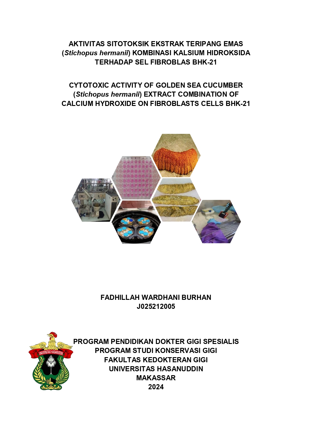 BURHAN, FADHILLAH WARDHANI (2025) AKTIVITAS SITOTOKSIK EKSTRAK TERIPANG EMAS (Stichopus hermanii) KOMBINASI KALSIUM HIDROKSIDA TERHADAP SEL FIBROBLAS BHK-21. Skripsi thesis, Universitas Hasanuddin.