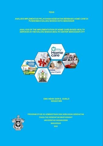 SUSILO, EMA INDAH SARI E. (2025) ANALISIS IMPLEMENTASI PELAYANAN KESEHATAN BERBASIS HOME CARE DI PUSKESMAS KALUKU BODOA KOTA MAKASSAR = ANALYSIS OF THE IMPLEMENTATION OF HOME CARE-BASED HEALTH SERVICES IN THE KALUKU BODOA HEALTH CENTER MAKASSAR CITY. Thesis thesis, Universitas Hasanuddin.