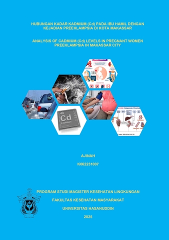 AJINAH, AJINAH (2025) HUBUNGAN KADAR KADMIUM (Cd) PADA IBU HAMIL DENGAN KEJADIAN PREEKLAMPSIA DI KOTA MAKASSAR = ANALYSIS OF CADMIUM (Cd) LEVELS IN PREGNANT WOMEN PREEKLAMPSIA IN MAKASSAR CITY. Thesis thesis, Universitas Hasanuddin.