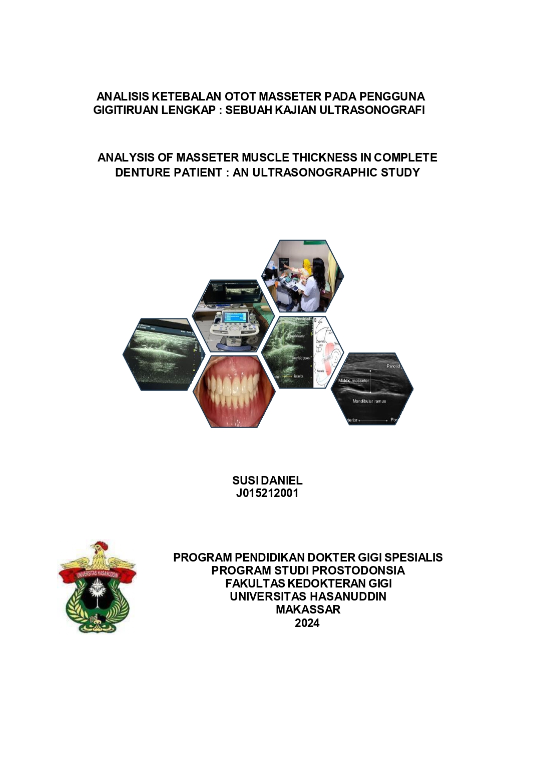DANIEL B, SUSI (2025) ANALISIS KETEBALAN OTOT MASSETER PADA PENGGUNA GIGITIRUAN LENGKAP : SEBUAH KAJIAN ULTRASONOGRAFI. Skripsi thesis, Universitas Hasanuddin.