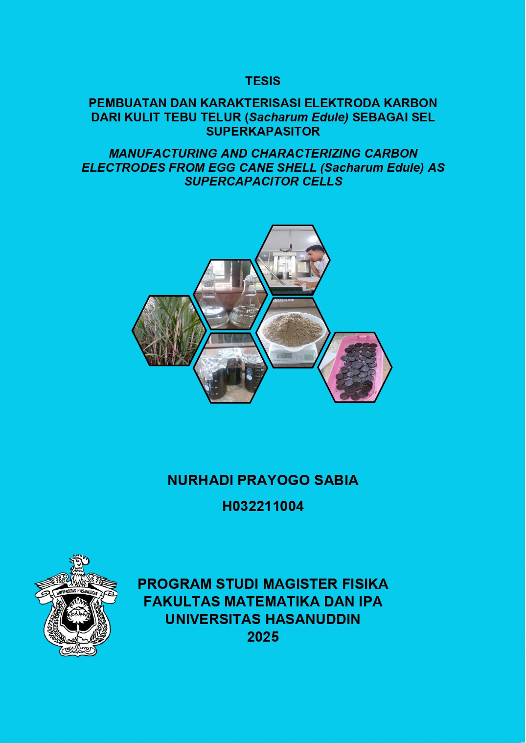 SABIA, NURHADI PRAYOGO (2025) PEMBUATAN DAN KARAKTERISASI ELEKTRODA KARBON DARI KULIT TEBU TELUR (Sacharum Edule) SEBAGAI SEL SUPERKAPASITOR = MANUFACTURING AND CHARACTERIZING CARBON ELECTRODES FROM EGG SUPER CAPACITOR (Sacharum Edule) SHELLS AS SUPERCAPACITOR CELLS. Thesis thesis, Universitas Hasanuddin.