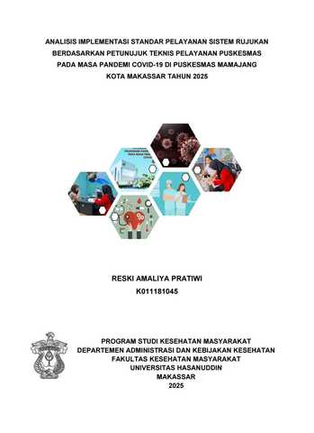 PRATIWI, RESKI AMALIYA (2025) ANALISIS IMPLEMENTASI STANDAR PELAYANAN SISTEM RUJUKAN BERDASARKAN PETUNUJUK TEKNIS PELAYANAN PUSKESMAS PADA MASA PANDEMI COVID-19 DI PUSKESMAS MAMAJANG KOTA MAKASSAR TAHUN 2025 = ANALYSIS OF IMPLEMENTATION OF REFERRAL SYSTEM SERVICE STANDARDS BASED ON TECHNICAL GUIDELINES FOR COMMUNITY HEALTH CENTER SERVICES DURING THE COVID-19 PANDEMIC AT MAMAJANG COMMUNITY HEALTH CENTER IN MAKASSAR CITY IN 2025. Skripsi thesis, Universitas Hasanuddin.