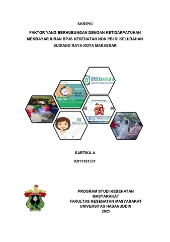 A, SARTIKA (2025) Faktor Yang Berhubungan Dengan Ketidakpatuhan Membayar Iuran BPJS Kesehatan Non PBI Di Kelurahan Sudiang Raya = Factors Related To Non-Compliance In Paying Non-Pbi Health Bpjs Contributions In Sudiang Raya Village, Makassar City. Skripsi thesis, Universitas Hasanuddin.
