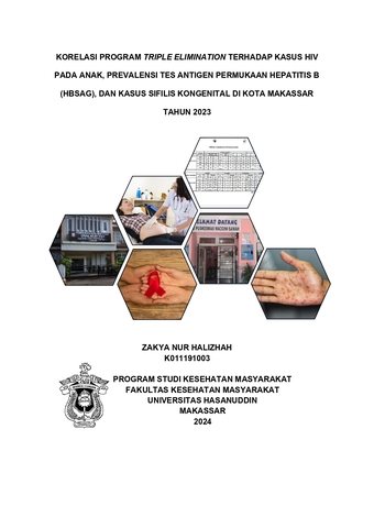 Halizhah, Zakya Nur (2025) Korelasi Program Triple Elimination terhadap Kasus HIV pada Anak, Prevalensi Tes Antigen Permukaan Hepatitis B (HBsAg), dan Kasus Sifilis Kongenital di Kota Makassar Tahun 2023 = Correlation of Triple Elimination Program to HIV Cases in Children, Prevalence of Hepatitis B Surface Antigen (HBsAg) Tests, and Congenital Syphilis Cases in Makassar City in 2023. Skripsi thesis, Universitas Hasanuddin.