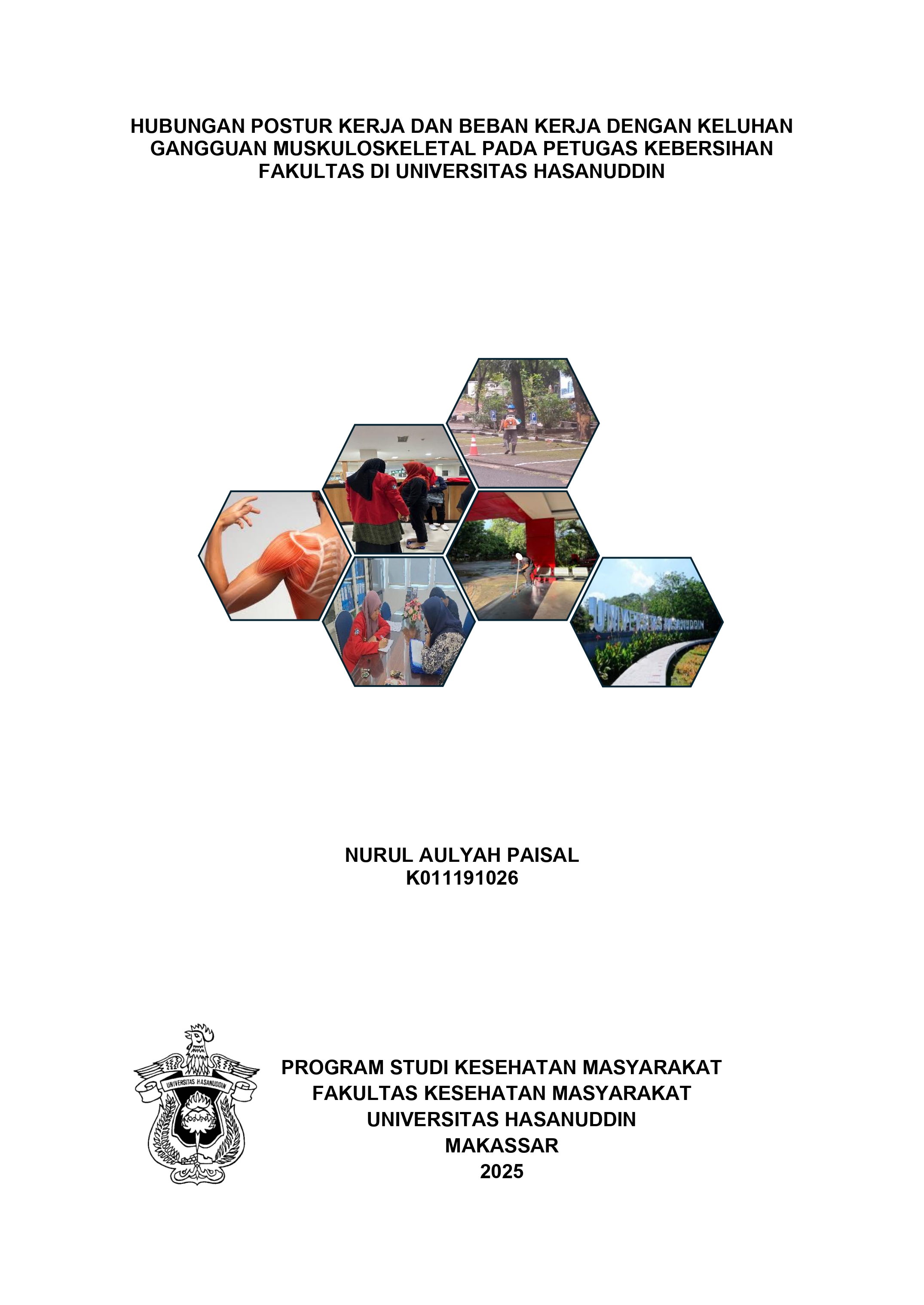 Paisal, Nurul Aulyah (2025) Hubungan Postur Kerja dan Beban Kerja dengan Keluhan Gangguan Muskuloskeletal pada Petugas Kebersihan Fakultas di Universitas Hasanuddin = The Relationship Between Work Posture and Workload with Musculoskeletal Disorders Complaints Among Faculty Cleaning Service Workers at Hasanuddin University. Skripsi thesis, Universitas Hasanuddin.