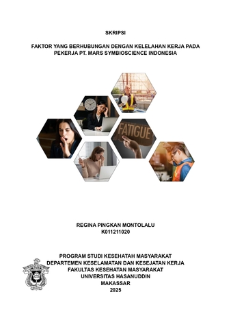 MONTOLALU, REGINA PINGKAN (2025) Faktor yang Berhubungan dengan Kelelahan Kerja pada Pekerja PT Mars Symbioscience Indonesia = Factors related to Work Fatigue in Workers of PT Mars Symbioscience Indonesia. Skripsi thesis, Universitas Hasanuddin.