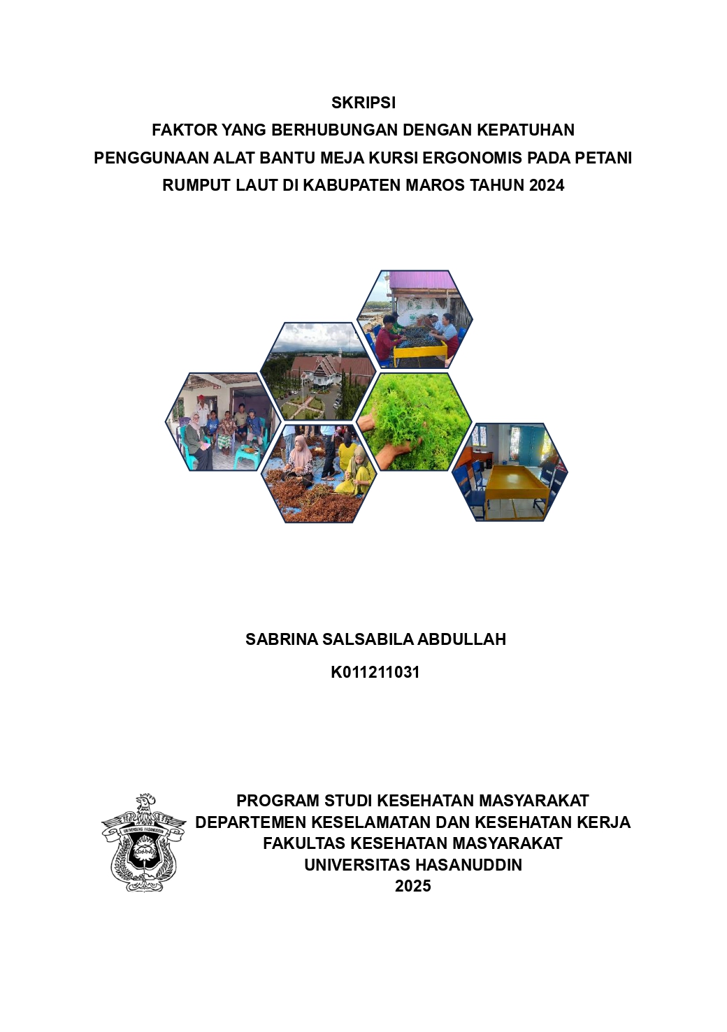 ABDULLAH, SABRINA SALSABILA (2025) Faktor yang Berhubungan dengan Kepatuhan Penggunaan Alat Bantu Meja Kursi Ergonomis pada Petani Rumput Laut di Kabupaten Maros Tahun 2024 = Factors Associated with Compliance in the Use of Ergonomic Tools among Seaweed Farmers in Maros Regency in 2024. Skripsi thesis, Universitas Hasanuddin.