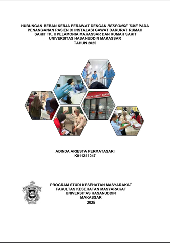 PERMATASARI, ADINDA ARIESTA (2025) Hubungan Beban Kerja Perawat Dengan Response time Pada Penanganan Pasien di Instalasi Gawat Darurat Rumah Sakit TK. II Pelamonia Makassar dan Rumah Sakit Universitas Hasanuddin Makassar Tahun 2025 = The Relationship Between Nurse Workload and Response time in Patient Handling at the Emergency Department of TK. II Pelamonia Hospital Makassar and Hasanuddin University Hospital Makassar in 2025. Skripsi thesis, Universitas Hasanuddin.