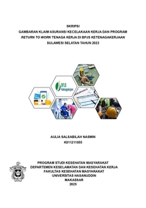 NASMIN, AULIA SALSABILAH (2025) GAMBARAN KLAIM ASURANSI KECELAKAAN KERJA DAN PROGRAM RETURN TO WORK TENAGA KERJA DI BPJS KETENAGAKERJAAN SULAWESI SELATAN TAHUN 2023 = Overview of Work Accident Insurance Claims and Return to work Program for Workers at BPJS Ketenagakerjaan in South Sulawesi Region in 2023. Skripsi thesis, Universitas Hasanuddin.