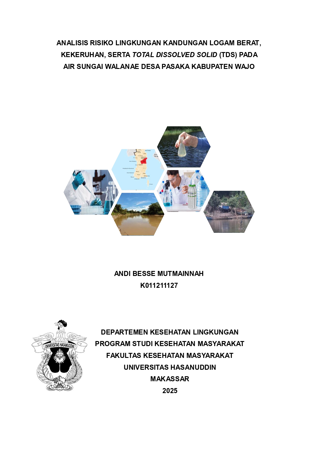 MUTMAINNAH, ANDI BESSE (2025) Analisis Risiko Lingkungan Kandungan Logam Berat, Kekeruhan, serta Total Dissolved Solid (TDS) pada Air Sungai Walanae Desa Pasaka Kabupaten Wajo = Environmental Risk Analysis of Heavy Metal Content, Turbidity, and Total Dissolved Solid (TDS) in Walanae River Water, Pasaka Village, Wajo Regency. Skripsi thesis, Universitas Hasanuddin.