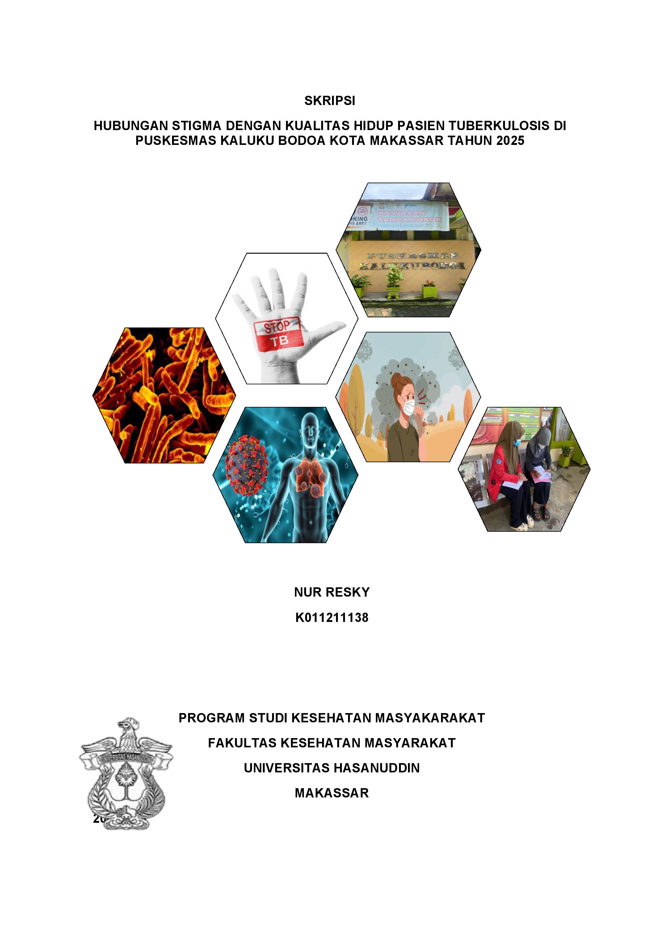 RESKY, NUR (2025) Hubungan Stigma dengan Kualitas Hidup Pasien Tuberkulosis di Puskesmas Kaluku Bodoa Kota Makassar Tahun 2025 = The Relationship between Stigma and Quality of Life of Tuberculosis Patients at the Kaluku Bodoa Health Center, Makassar City in 2025. Skripsi thesis, Universitas Hasanuddin.