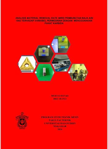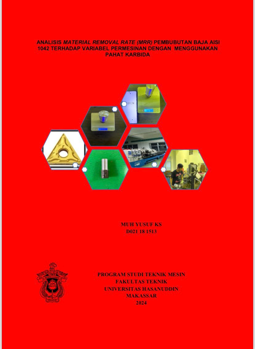 YUSUF KS, MUH. (2024) ANALISIS MATERIAL REMOVAL RATE (MRR) PEMBUBUTAN BAJA AISI 1042 TERHADAP VARIABEL PERMESINAN DENGAN MENGGUNAKAN PAHAT KARBIDA = Material Removal Rate (MRR) Analysis of AISI 1042 Steel Turning on Machining Variables Using Carbide Chisels. Skripsi thesis, Universitas Hasanuddin.