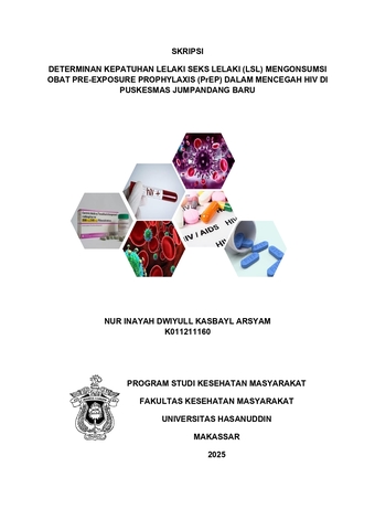 ARSYAM, NUR INAYAH DWIYULL KASBAYL (2025) Determinan Kepatuhan Lelaki Seks Lelaki (LSL) Mengonsumsi Obat Pre-Exposure Prophylaxis (PrEP) Dalam Mencegah HIV di Puskesmas Jumpandang Baru = Determinants of Adherence Among Men Who Have Sex with Men (MSM) in Consuming Pre-Exposure Prophylaxis (PrEP) Medication to Prevent HIV at the Jumpandang Baru Community Health Center. Skripsi thesis, Universitas Hasanuddin.