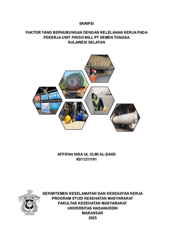 AL-DAISI, AFFIFAH NISA UL ULMI (2025) Faktor yang Berhubungan dengan Kelelahan Kerja pada Pekerja Unit Finish Mill PT Semen Tonasa Sulawesi Selatan = Factors Associated with Work Fatigue among Workers in the Finish Mill Unit of PT Semen Tonasa, South Sulawesi. Skripsi thesis, Universitas Hasanuddin.