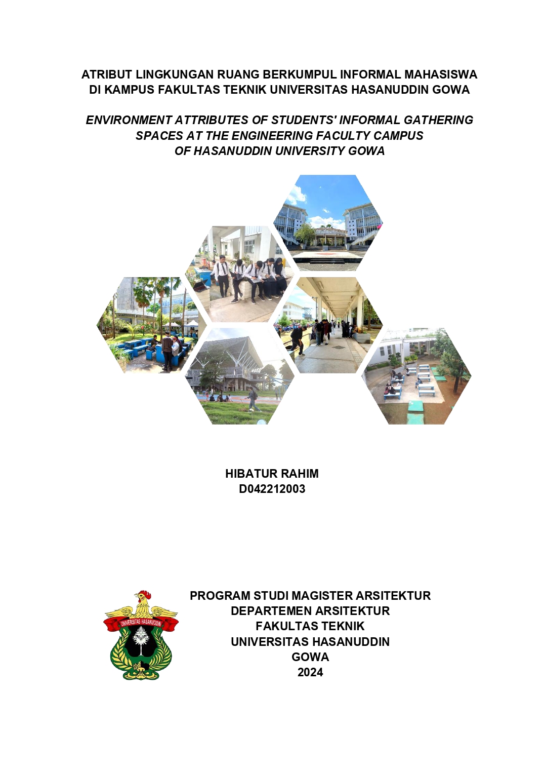 RAHIM, HIBATUR (2024) Atribut Lingkungan Ruang Berkumpul Informal di Kampus Fakultas Teknik Universitas Hasanuddin Gowa = Environment Attributes Of Students' Informal Gathering Spaces At The Engineering Faculty Campus Of Hasanuddin University Gowa. Thesis thesis, Universitas Hasanuddin.
