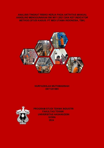MUTHMAINNAH, NURFADHILAH (2024) Analisis Tingkat Risiko Kerja pada Aktivitas Manual Handling Menggunakan SNI 9011:2021 dan Key Indicator Method (Studi Kasus: PT Midi Utama Indonesia, tbk) = Analysis of Occupational Risk Levels in Manual Handling Activities Using SNI 9011: 2021 and Key Indicator Method (Case Study: PT Midi Utama Indonesia, tbk). Skripsi thesis, Universitas Hasanuddin.