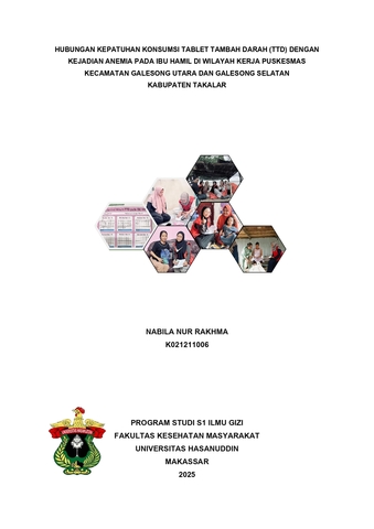 RAKHMA, NABILA NUR (2025) Hubungan Kepatuhan Konsumsi Tablet Tambah Darah dengan Kejadian Anemia pada Ibu Hamil di Wilayah Kerja Puskesmas Kecamatan Galesong Utara dan Galesong Selatan Kabupaten Takalar = The Relationship between Compliance with Iron Tablet Consumption and the Incidence of Anemia in Pregnant Women in the Working Areas of Galesong Utara and Galesong Selatan Community Health Centers, Takalar Regency. Skripsi thesis, Universitas Hasanuddin.