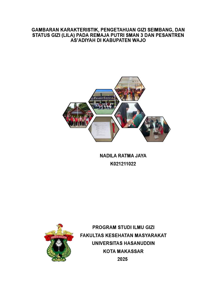 JAYA, NADILA RATMA (2025) Gambaran Karakteristik, Pengetahuan Gizi Seimbang, dan Status Gizi (LILA) pada Remaja Putri SMAN 3 dan Pesantren As'Adiyah di Kabupaten Wajo = Overview of Characteristics, Balanced Nutrition Knowledge, and Nutritional Status (MUAC) among Adolescent Girls at SMAN 3 and As'Adiyah Islamic Boarding School in Wajo Regency. Skripsi thesis, Universitas Hasanuddin.