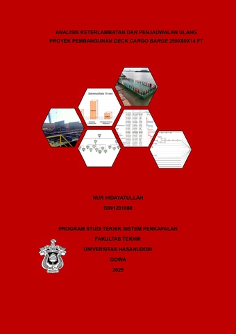 HIDAYATULLAH, NUR (2025) Analisis keterlambatan dan penjadwalan ulang proyek pembangunan deck cargo barge 250x80x14 ft = Analysis of delay and rescheduling of the Deck Cargo Barge 250x80x14 ft construction project. Skripsi thesis, Universitas Hasanuddin.