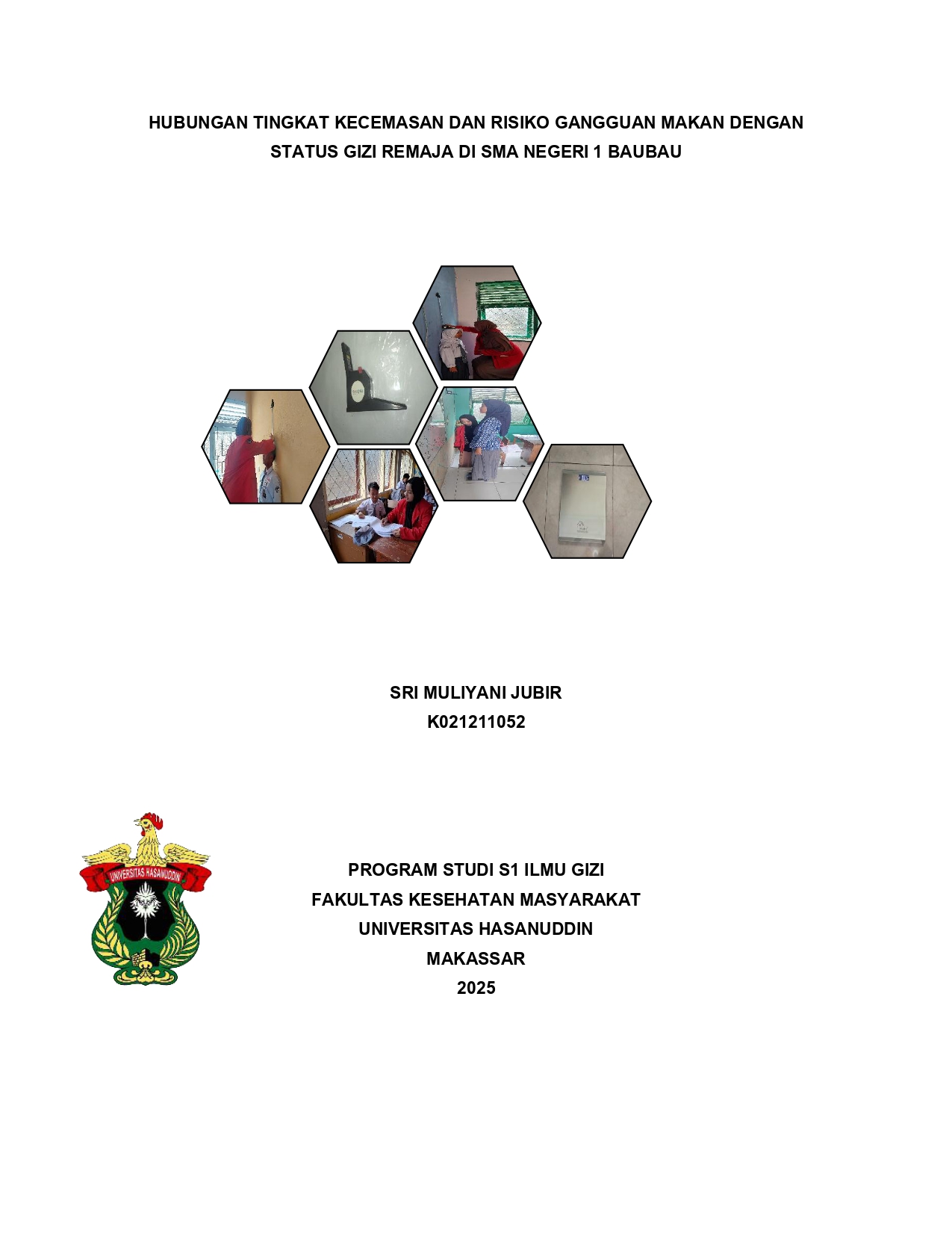 JUBIR, SRI MULIYANI (2025) Hubungan Tingkat Kecemasan dan Risiko Gangguan Makan dengan Status Gizi Remaja di SMA Negeri 1 Baubau = The Association Between Anxiety Levels and the Risk of Eating Disorders with the Nutritional Status of Adolescents at Senior High School 1 Baubau. Skripsi thesis, Universitas Hasanuddin.