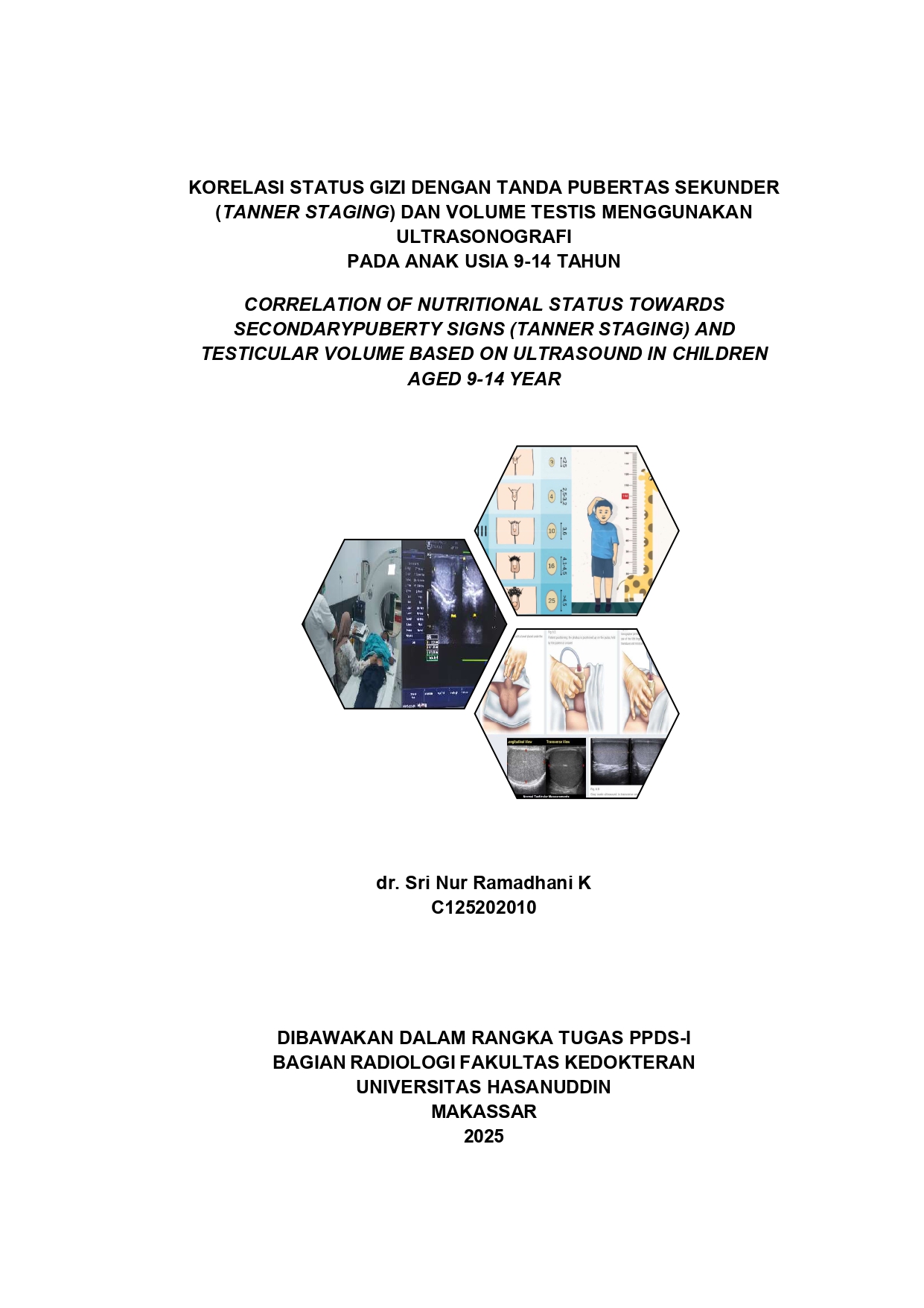 RAMADHANI K, SRI NUR (2025) KORELASI STATUS GIZI DENGAN TANDA PUBERTAS SEKUNDER (TANNER STAGING) DAN VOLUME TESTIS MENGGUNAKAN ULTRASONOGRAFI PADA ANAK USIA 9-14 TAHUN =CORRELATION OF NUTRITIONAL STATUS TOWARDS SECONDARYPUBERTY SIGNS (TANNER STAGING) AND TESTICULAR VOLUME BASED ON ULTRASOUND IN CHILDREN AGED 9-14 YEAR. Skripsi thesis, Universitas Hasanuddin.