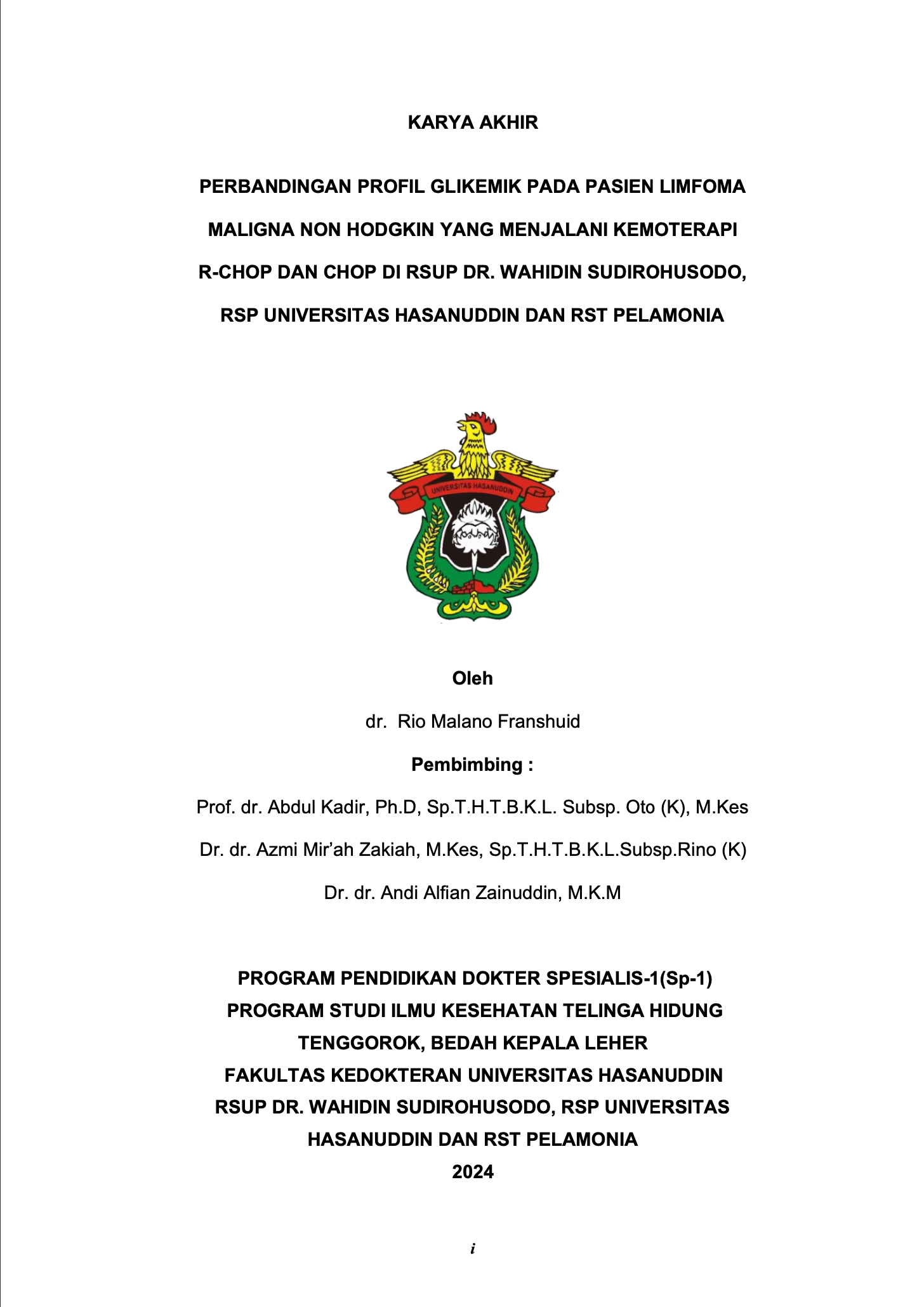 FRANSHUID, RIO MALANO (2025) PERBANDINGAN PROFIL GLIKEMIK PADA PASIEN LIMFOMA MALIGNA NON HODGKIN YANG MENJALANI KEMOTERAPI R-CHOP DAN CHOP DI RSUP DR. WAHIDIN SUDIROHUSODO, RSP UNIVERSITAS HASANUDDIN DAN RST PELAMONIA = Comparison of Glycemic Profiles in Non Hodgkin Lymphoma Patients Undergoing R-CHOP and CHOP Chemotherapy at Rsup Dr. Wahidin Sudirohusodo, Rsp Hasanuddin University And Rst Pelamonia. Skripsi thesis, Universitas Hasanuddin.