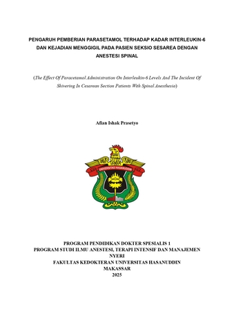 PRASETYO, AFIAN ISHAK (2025) PENGARUH PEMBERIAN PARASETAMOL TERHADAP KADAR INTERLEUKIN-6 DAN KEJADIAN MENGGIGIL PADA PASIEN SEKSIO SESAREA DENGAN ANESTESI SPINAL = THE INFLUENCE OF WORKLOAD AND WORK-LIFE BALANCE ON NURSES WORK MOTIVATION IN THE INPATIENT INSTALLATION AT RSUD HAJI SOUTH SULAWESI PROVINCE IN 2024. Skripsi thesis, Universitas Hasanuddin.