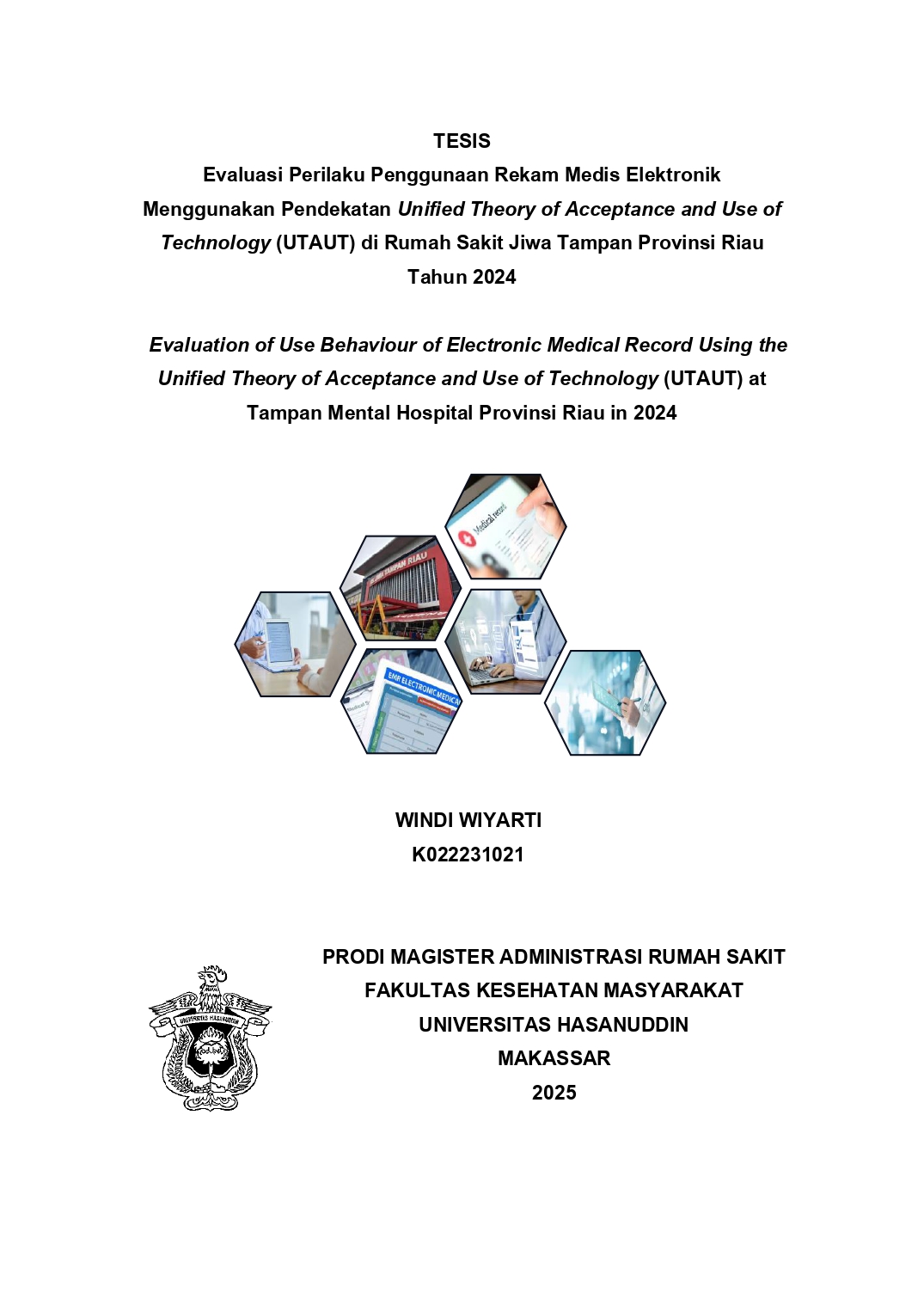 WIYARTI, WINDI (2025) Evaluasi Perilaku Penggunaan Rekam Medis Elektronik Menggunakan Pendekatan Unified Theory of Acceptance and Use of Technology (UTAUT) di Rumah Sakit Jiwa Tampan Provinsi Riau Tahun 2024 = Evaluation of Use Behaviour of Electronic Medical Record Using the Unified Theory of Acceptance and Use of Technology (UTAUT) at Tampan Mental Hospital Provinsi Riau in 2024 = Evaluation of Use Behaviour of Electronic Medical Record Using the Unified Theory of Acceptance and Use of Technology (UTAUT) at Tampan Mental Hospital Provinsi Riau in 2024. Thesis thesis, Universitas Hasanuddin.