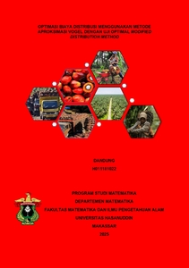 DANDUNG, DANDUNG (2025) OPTIMASI BIAYA DISTRIBUSI MENGGUNAKAN METODE APROKSIMASI VOGEL DENGAN UJI OPTIMAL MODIFIED DISTRIBUTION METHOD = OPTIMIZATION OF DISTRIBUTION COSTS USING VOGEL'S APPROXIMATION METHOD AND MODIFIED DISTRIBUTION METHOD FOR OPTIMALITY TEST. Skripsi thesis, Universitas Hasanuddin.