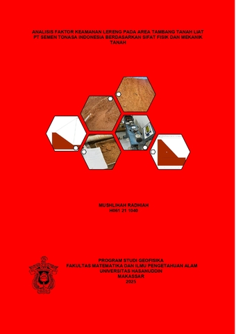 RADHIAH, MUSHLIHAH (2025) ANALISIS FAKTOR KEAMANAN LERENG PADA AREA TAMBANG TANAH LIAT PT SEMEN TONASA INDONESIA BERDASARKAN SIFAT MEKANIK TANAH = ANALYSIS OF SAFETY FACTOR OF CLAY MINE SLOPE PT SEMEN TONASA INDONESIA BASED ON PHYSICAL AND MECHANICAL PROPERTIES OF SOIL. Skripsi thesis, Universitas Hasanuddin.