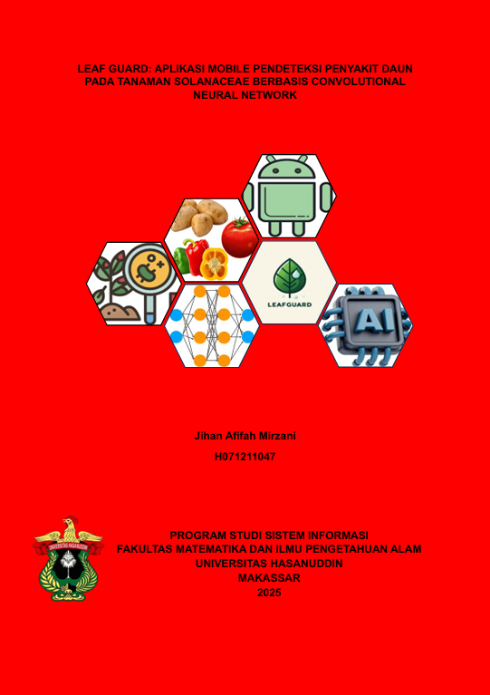 MIRZANI, JIHAN AFIFAH (2025) Leaf Guard: Aplikasi Mobile Pendeteksi Penyakit Daun pada Tanaman Solanaceae Berbasis Convolutional Neural Network = Leaf Guard: Mobile Application for Leaf Disease Detection in Solanaceae Plants Based on Convolutional Neural Network. Skripsi thesis, Universitas Hasanuddin.