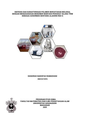 DZAKIRRAMADHANI, DZAKIRAH NADHIFAH (2025) Sintesis dan Karakterisasi Polimer Bercetakan Molekul dengan Menggunakan Monomer MAM dan Pengikat Silang TRIM Sebagai Adsorben Senyawa Alizarin Red S = Synthesis and Characterization of Molecularly Imprinted Polymers Using MAM as Monomers and TRIM as Crosslinkers as Adsorbents for Alizarin Red S Compounds. Skripsi thesis, Universitas Hasanuddin.