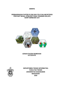 RAMDHANI, ADNAN FAUZAN (2024) PERBANDINGAN FASTER R-CNN DAN YOLO DALAM DETEKSI PENYAKIT BASAL STEM ROT PADA TANAMAN KELAPA SAWIT BERBASIS UAV = Comparison of Faster R-CNN and YOLO in UAV- based Basal Stem Ro tDisease Detection in Oil Palm. Skripsi thesis, Universitas Hasanuddin.