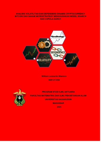 WANTORO, WILLIAM LEONARDO (2025) ANALISIS VOLATILITAS DAN DEPENDENSI DINAMIS CRYPTOCURRENCY BITCOIN DAN SAHAM MICROSTRATEGY MENGGUNAKAN MODEL EGARCH DAN COPULA-GARCH = ANALYSIS OF VOLATILITY AND DYNAMIC DEPENDENCE OF THE CRYPTOCURRENCY BITCOIN AND MICROSTRATEGY STOCK USING EGARCH AND COPULA-GARCH MODELS. Skripsi thesis, Universitas Hasanuddin.