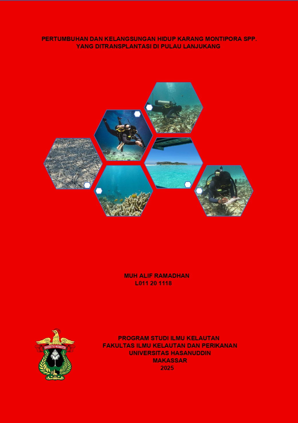 RAMADHAN, MUH.ALIF (2025) PERTUMBUHAN DAN KELANGSUNGAN HIDUP KARANG MONTIPORA SPP. YANG DITRANSPLANTASI DI PULAU LANJUKANG = GROWTH AND SURVIVAL OF TRANSPLANTED MONTIPORA SPP. CORALS ON LANJUKANG ISLAND. Skripsi thesis, Universitas Hasanuddin.